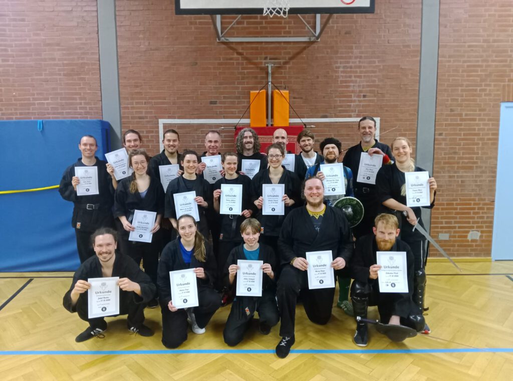 Kurz vor Weihnachten gab es noch sehr erfolgreiche Prüfungen. Die gezeigten Leistungen im Kampf mit dem Langen Schwert und im Umgang mit Schwert & Buckler waren sehr solide!